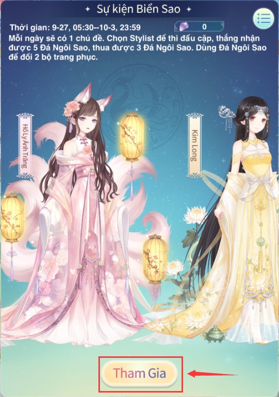 - Dùng Đá Ngôi Sao để đổi các trang phục: Hồ Ly Ánh Trăng và Kim Long. Thắng được 5 Đá Ngôi Sao, Thua được 3 Đá Ngôi Sao.