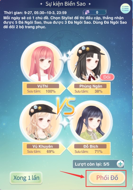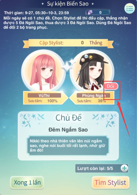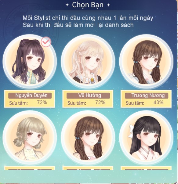 - Mỗi Stylist chỉ có thể thi đấu cùng nhau 1 lần mỗi ngày. Sau khi thi đấu xong sẽ làm mới lại danh sách chọn Stylist.
